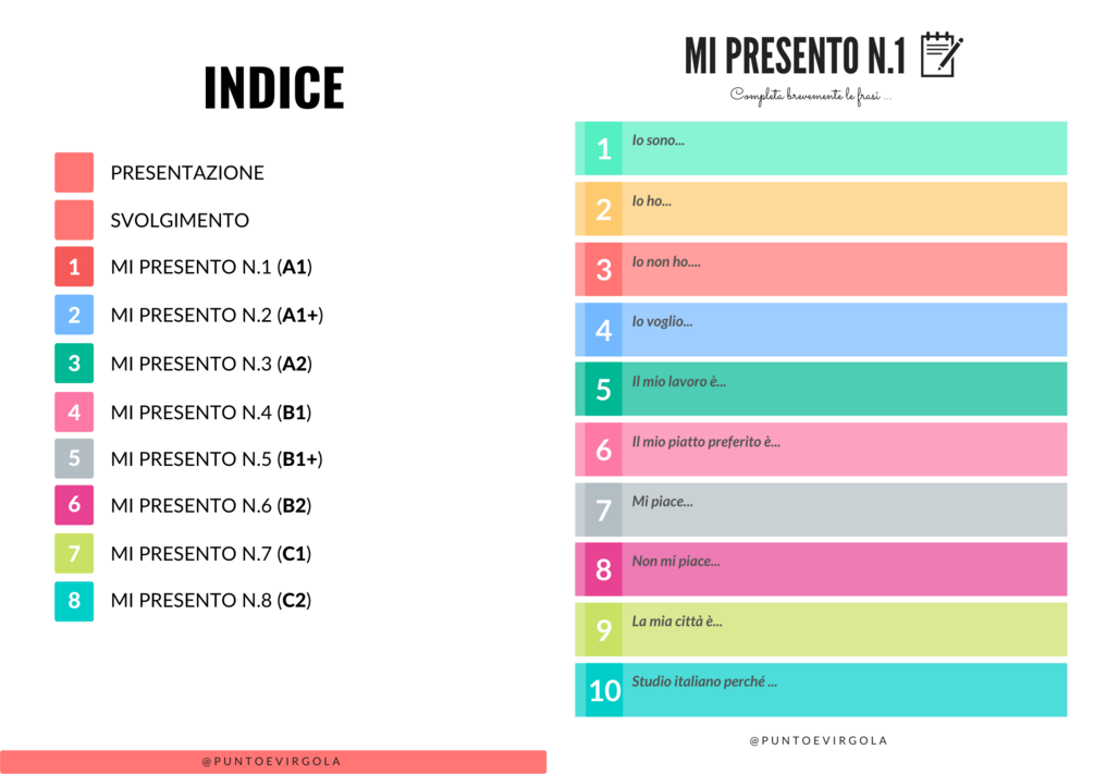 Le attività sono state pensate per esercitare la produzione orale e scritta dei nostri studenti. Sono 8 schede lavoro divise in base al livello: dall'iniziale (A1) all'avanzato (C2) con due intermedi (A1+ e B1+).